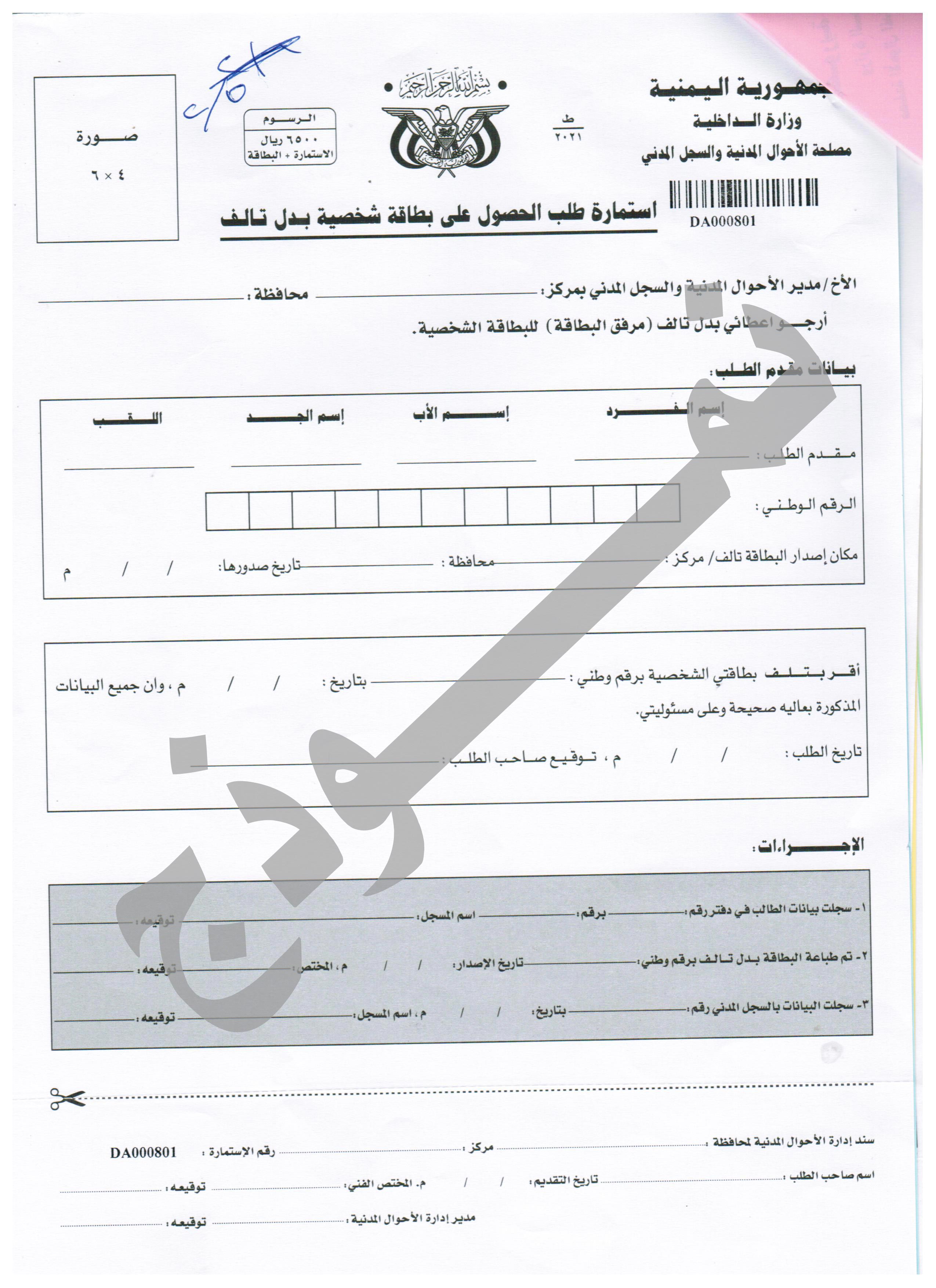 نموذج طلب الحصول على بطاقة شخصية بدل فاقد