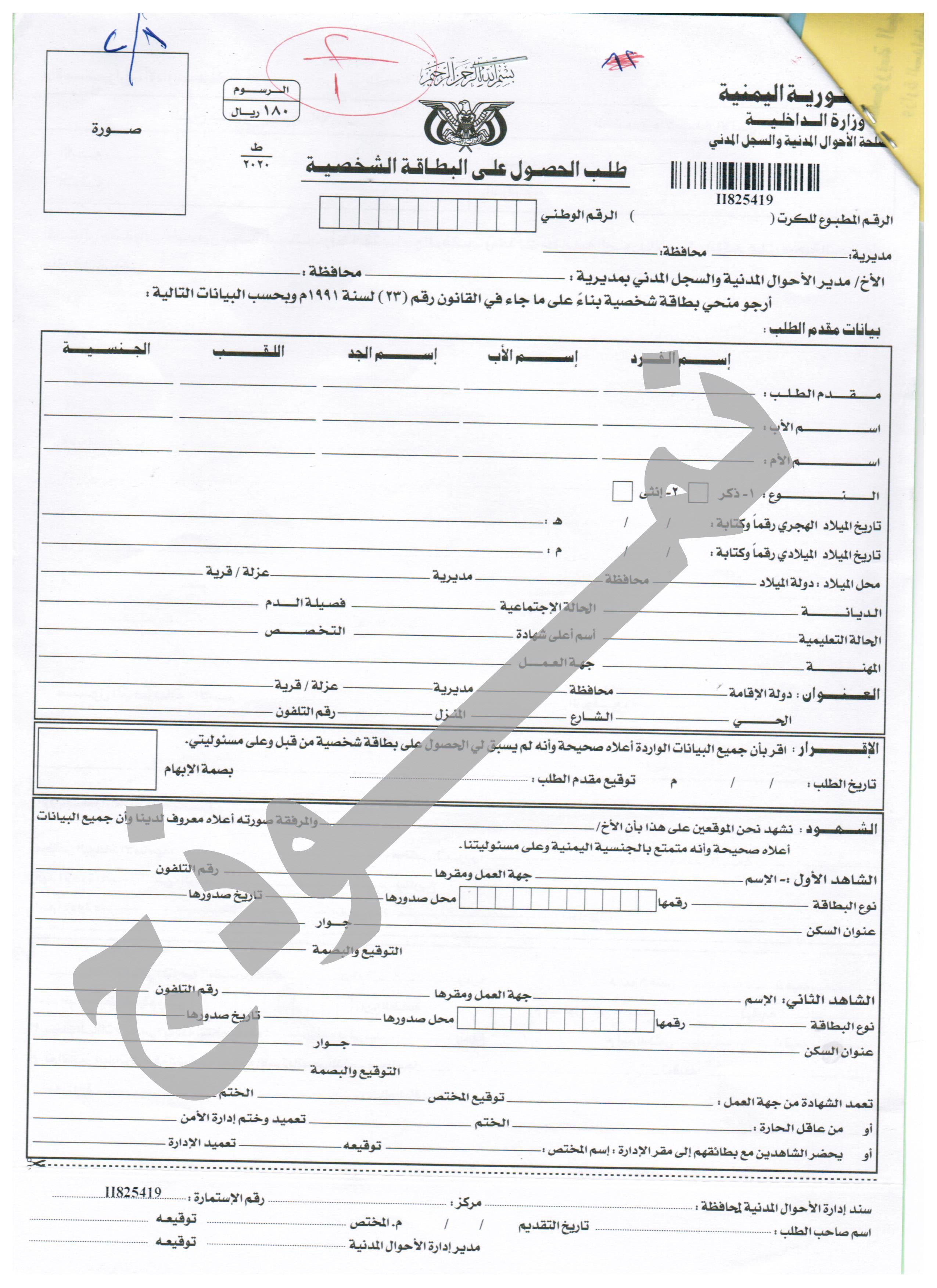 نموذج طلب الحصول على البطاقة الشخصية