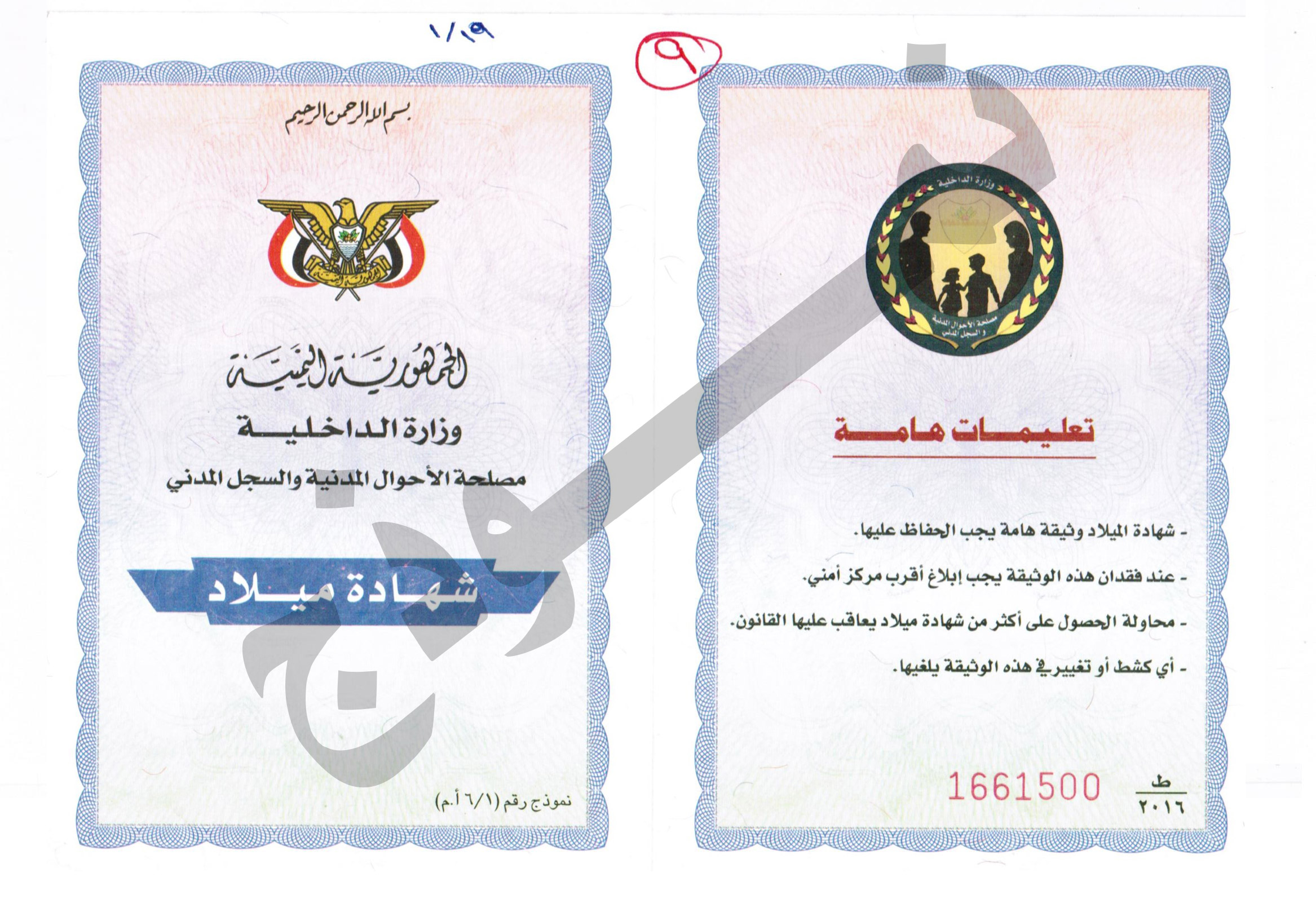 نموذج شهادة ميلاد