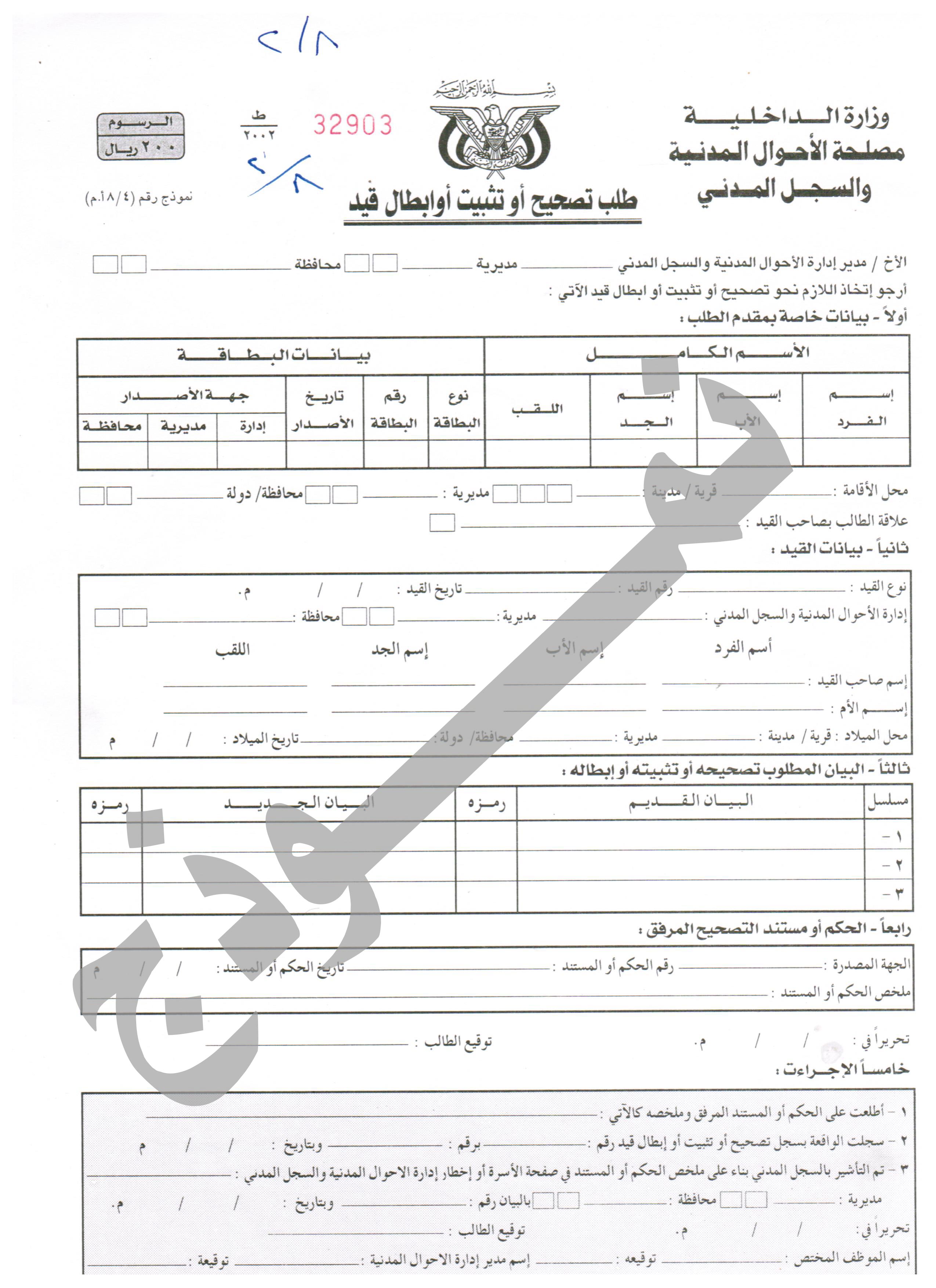 نموذج طلب تصحيح او إبطال قيد